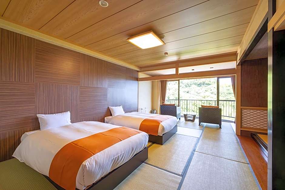 This twin room's special feature is the private open-air bath. The spacious twin room provides air conditioning, a wardrobe, a balcony with sea views as well as a private bathroom featuring a bath. The unit offers 2 beds.